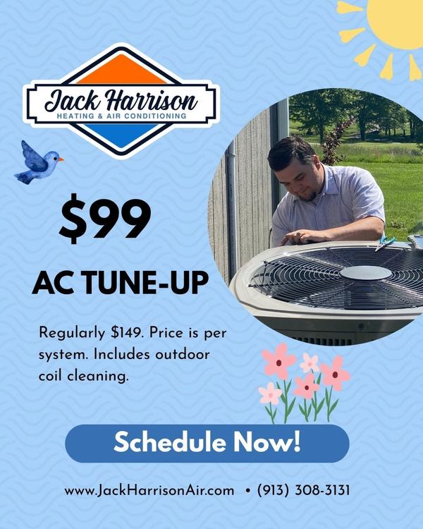 At Jack Harrison Heating & Air Conditioning, our special $99 Spring Tune-Up ensures your system is ready for Kansas heat.