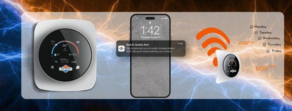 Stay in control of your home’s climate no matter where you are. The Nuve Smart Thermostat sends real-time updates about your system’s health, maintenance needs, and more, so you're always informed. You'll receive helpful reminders, maintenance notifications, and performance alerts to ensure your home stays at the perfect temperature.